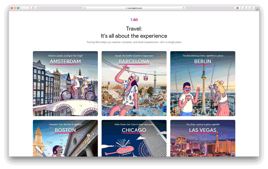 20 illustrations for the trip planning web app Touring Bird. The idea was to capture central attractions and sights of each city and make them funny and appealing. Client: Google Area 120