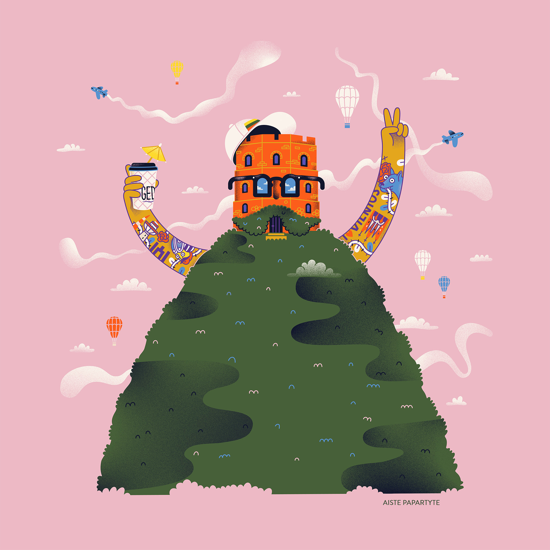 Poster of hip Gediminas Tower for Vilnius birthday.
